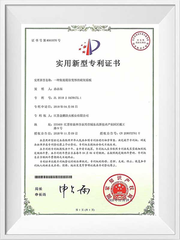 Uma placa de oxisulfeto de magnésio anti-deformação para recipientes