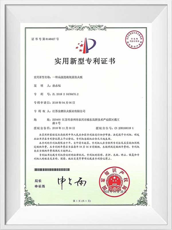 Uma placa à prova de fogo de oxisulfeto de magnésio de alta resistência